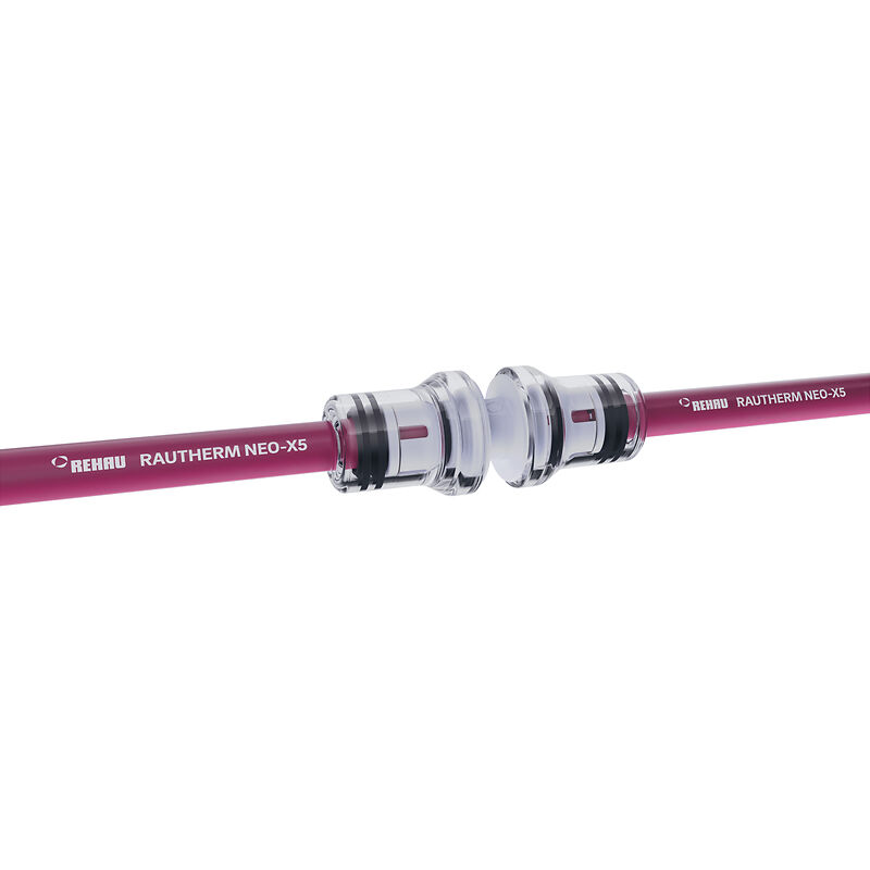 Mit dem Steckverbinder RAUTHERM NEO Easy Push 10 werden die Module werkzeuglos miteinander verbunden. Der Installateur steckt einfach das Rohr von Hand in die Kupplung und kontrolliert die Einstecktiefe über das transparente Gehäuse. Das vereinfacht und beschleunigt die Montage zusätzlich.